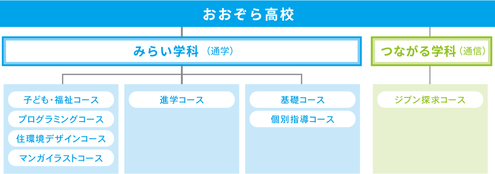 おおぞら高校には、さまざまな体験を通してみらいを描く「みらい学科™」と、